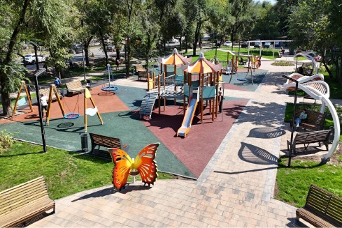 Рядом, выше по улице, ближе к Толе Би, находится другой сквер, который не обновлялся с 2016 года. По многочисленным обращениям жителей принято решение провести его реконструкцию в рамках текущего ремонта.